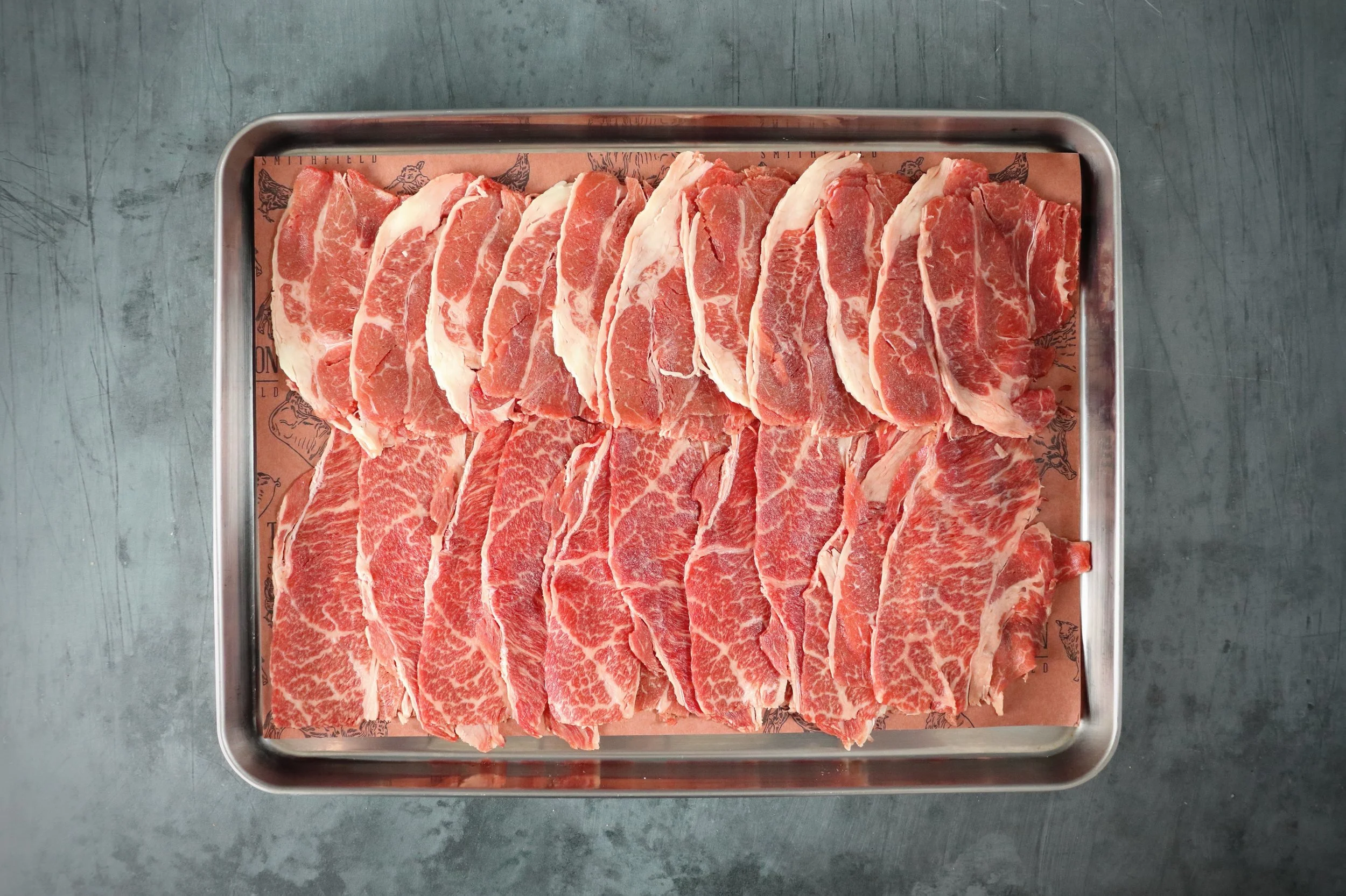 Slices of Wagyu beef for sukiyaki
